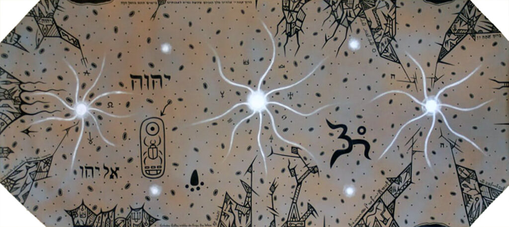 Even without any understanding of the Kabballah these paintings can —and I believe should— spark the imagination of the viewer.  Our ‘vocabulary’ to describe our reality is often a limited one. What is the cosmic map that fills the night sky? Is it just the one based on the Greco-Roman ‘view’? Of course not.  Native Americans see entirely relationships among the stars and have their own name for each constellation that they readily see. Our ability to see beyond our narrow definitions of time and space through the reality of others expands our comprehension and insight, and has the potential to raise new and meaningful questions.